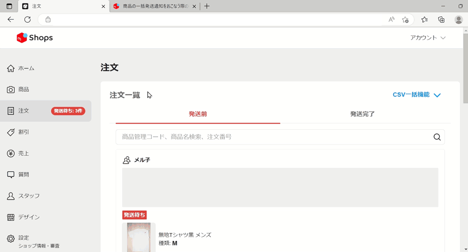 いつもメルカリShopsをご利用いただきありがとうございます。新機能のお知らせです。商品受注の際に行う発送通知や追跡情報登録などの「発送処理」を、CSVファイルを使って一括でできるようになりました。
